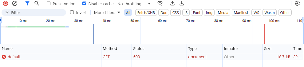 무조건 Status Code가 500으로 나오고