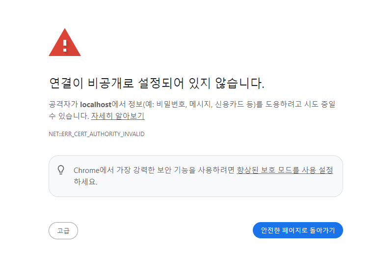 이제 그냥 http로 접속을 하면 이런 오류가 나온다