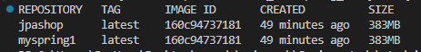 docker images 명령어로 확인해보면 정상적으로 이미지가 만들어진 것은 볼 수 있다