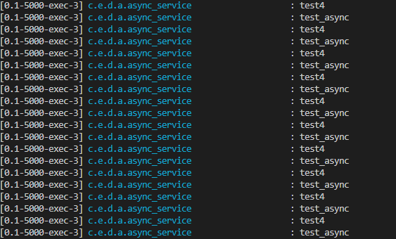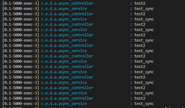 또한 AOP를 이용한 것이기 때문에 같은 class에 있는 @Async 메소드를 부르더라도 동기적으로 진행 된다.