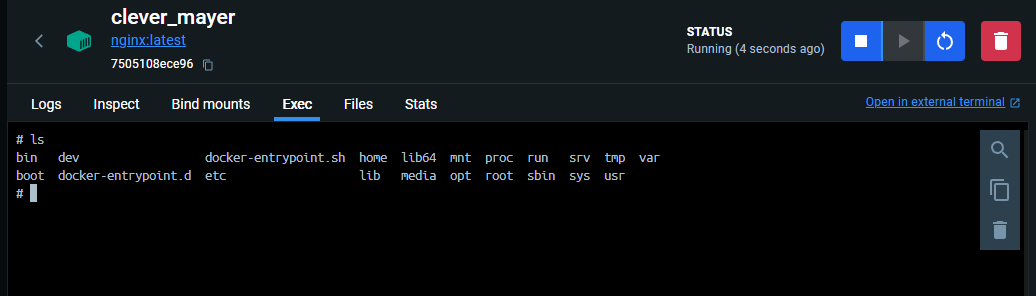 ex) docker -cp clever-mayer:/ect/nginx/nginx.conf ./nginx.conf